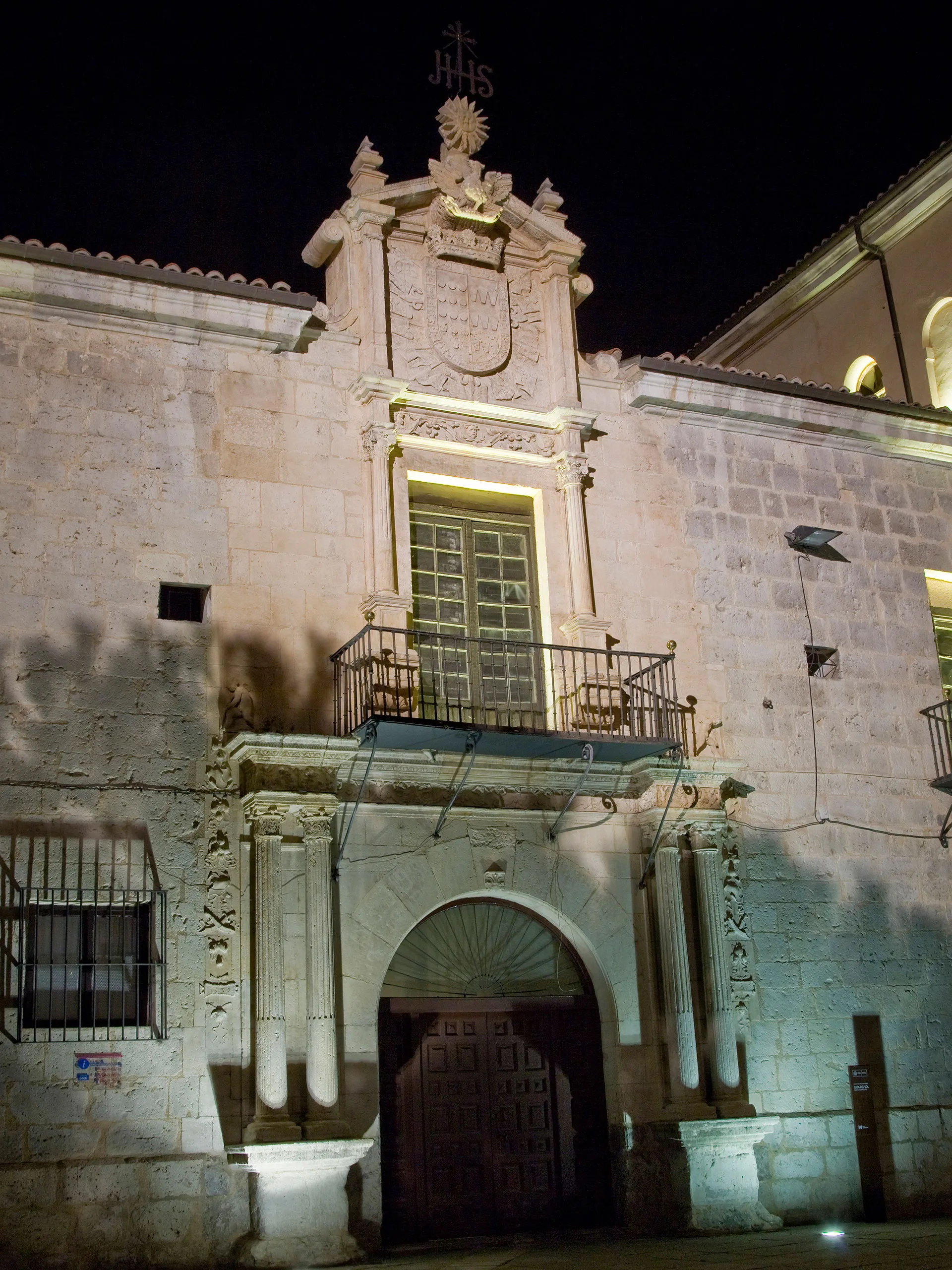 Construida en 1540 para el licenciado don Sancho Díaz de Leguizamón, alcalde de Corte y miembro del Consejo de S. M., a principios del siglo XVII fue adquirida por D. Diego Sarmiento de Acuña, embajador y conde de Gondomar, quien en 1612 encargó la conclusión del edificio bajo la supervisión del arquitecto Francisco de Praves, a la vez que concluye el vecino templo de San Benito “el viejo”, cuyo patronazgo ostentaba su familia. Vemos, por ello, las armas del Conde de Gondomar sobre el balcón de la portada principal y en el testero de la iglesia anexa de San Benito el Viejo, que ostenta escudo monumental.