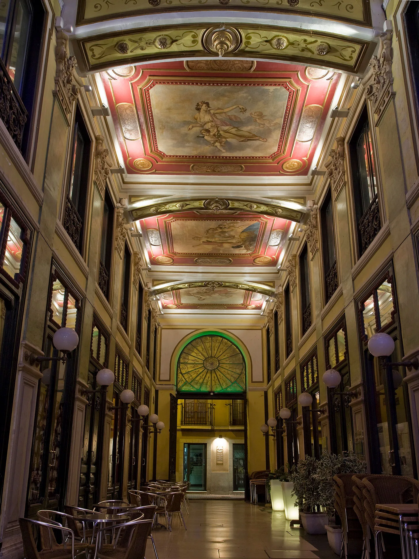 La yesería, los suntuosos arcos, las pinturas de los techos que representan motivos como la agricultura o la industria…una decoración, que se mantiene muy fiel a su aspecto original, que parece sumergirnos en la época decimonónica.